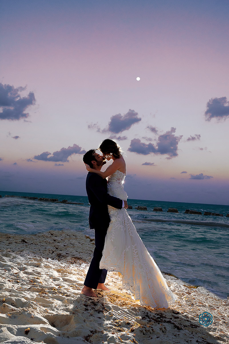 Sunset wedding couple portrait Riviera Maya