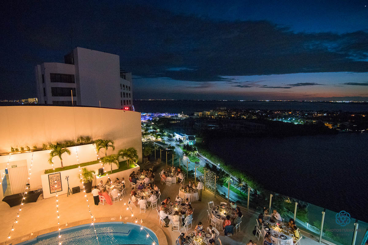 Wedding reception in a rooftop with awesome sunset