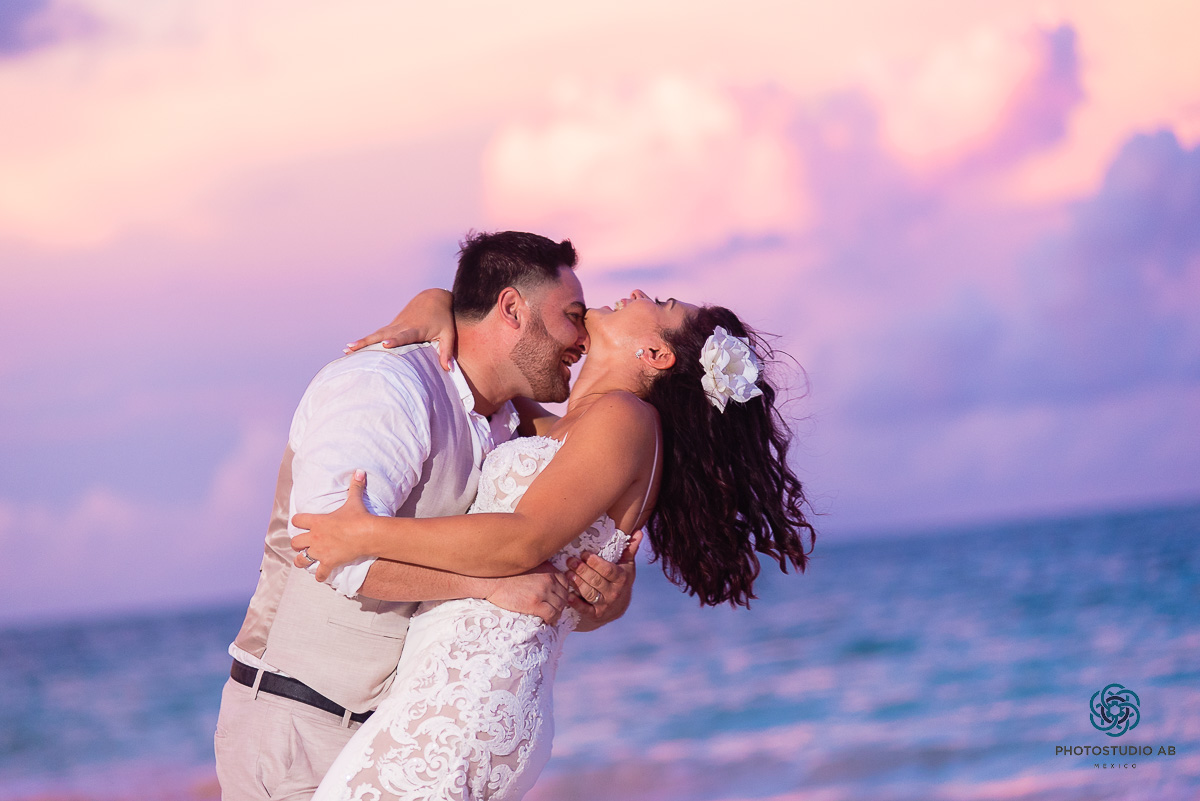 Wedding photo session at sunset for V and A from Newyork at Riu Palace Costa Mujeres resort.