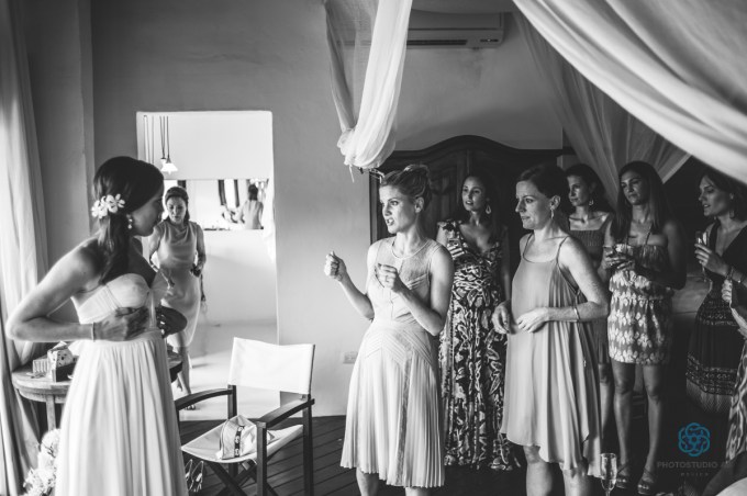 Precious moment before the ceremony when the bride is ready to go and the bridesmaids are excited for her. Last touch and go to getting married!!!