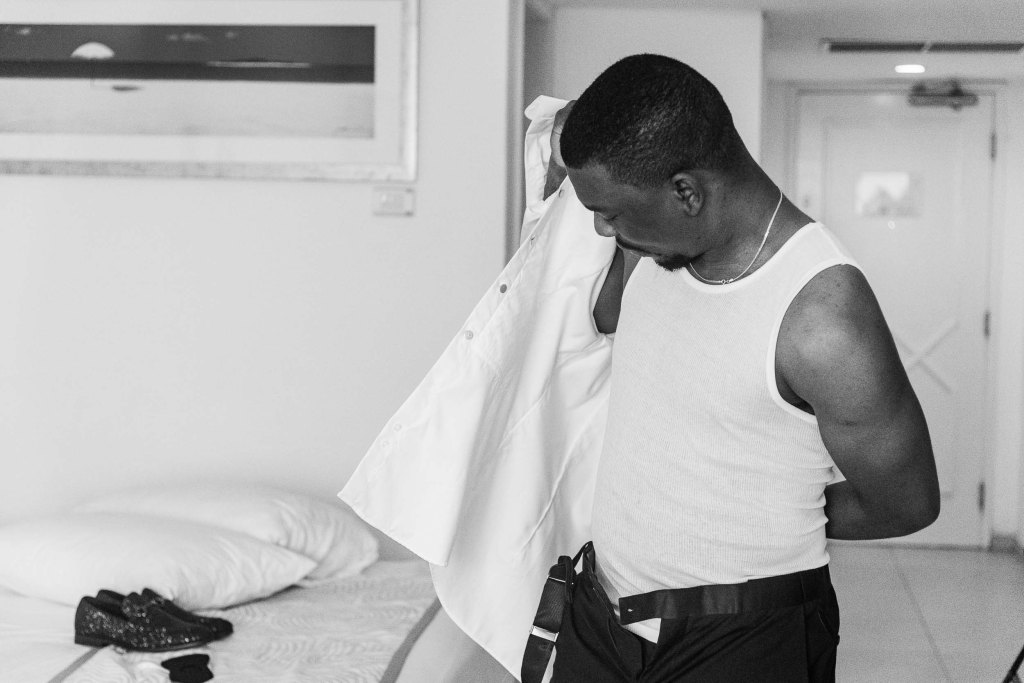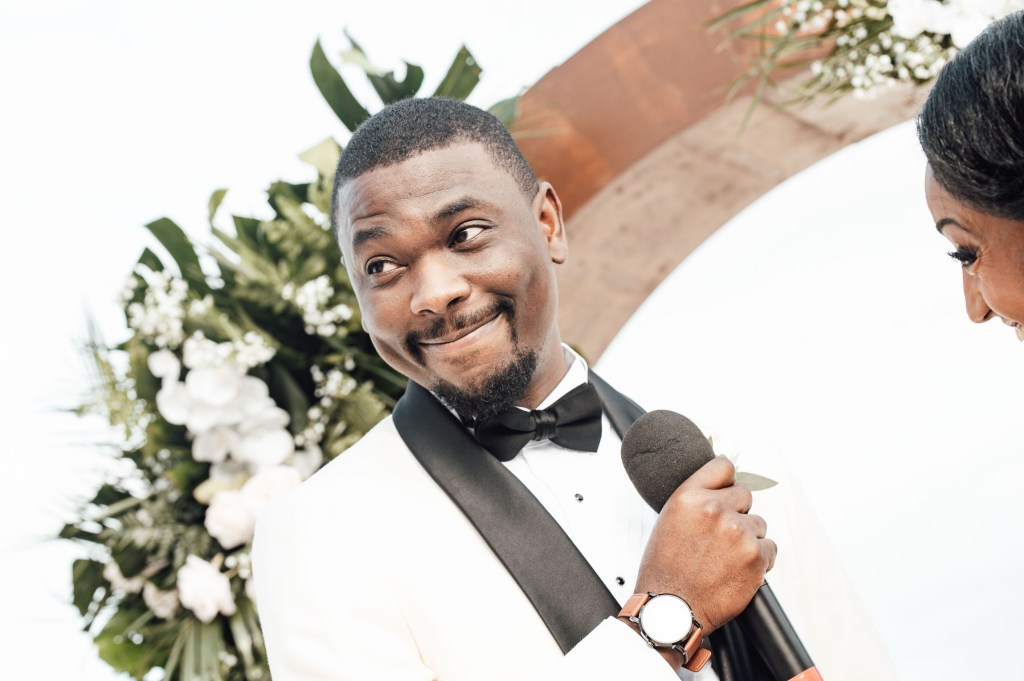 The day began with the couple getting ready in separate rooms, where they dressed in their ceremonial attire. In front of the stunning blue sea, the guests took their seats as the ceremony was about to begin. The atmosphere was beautiful, love was in the air, and the couple exchanged vows in front of their loved ones.