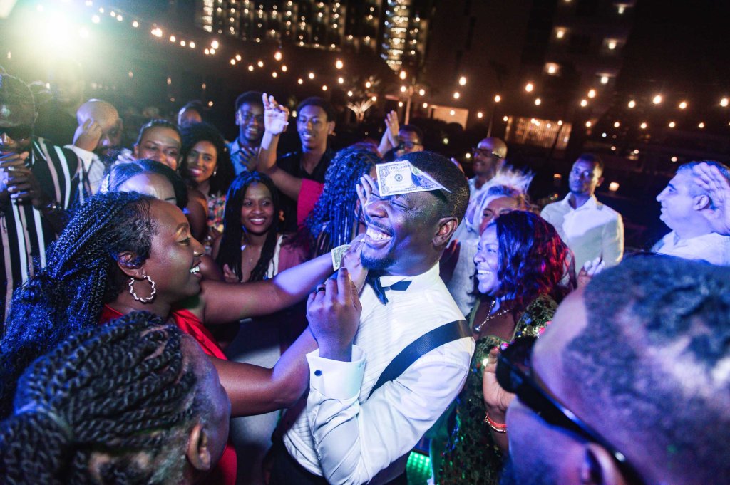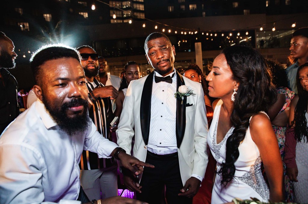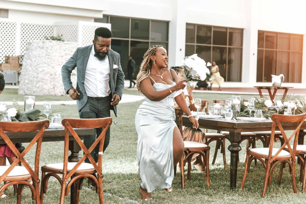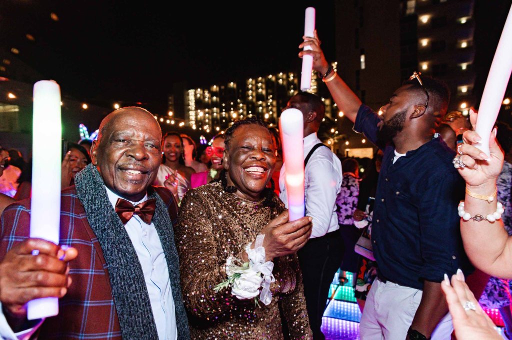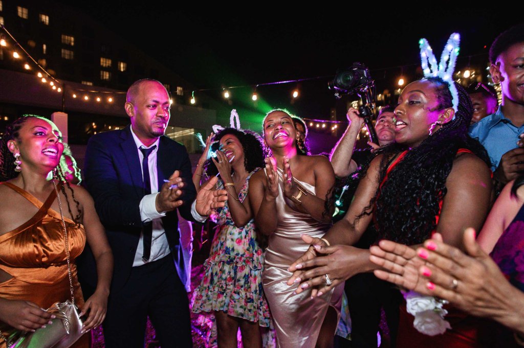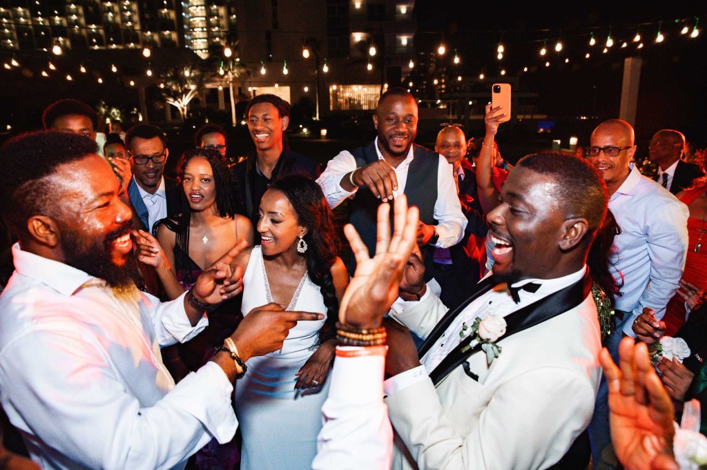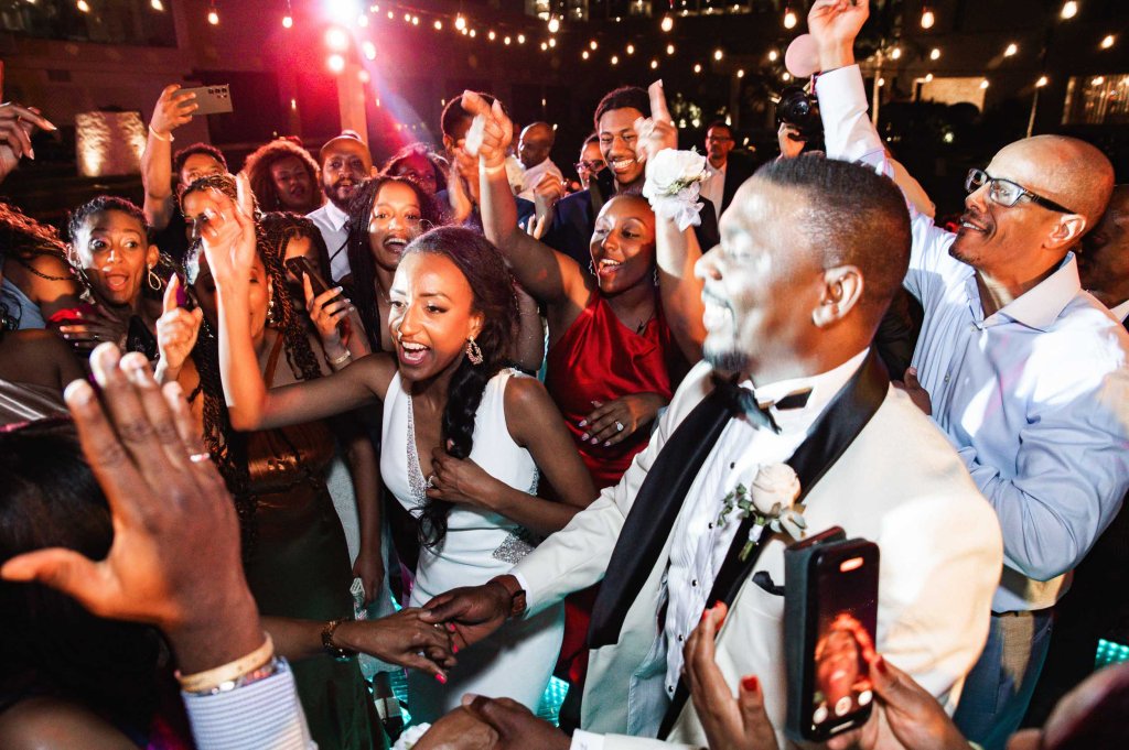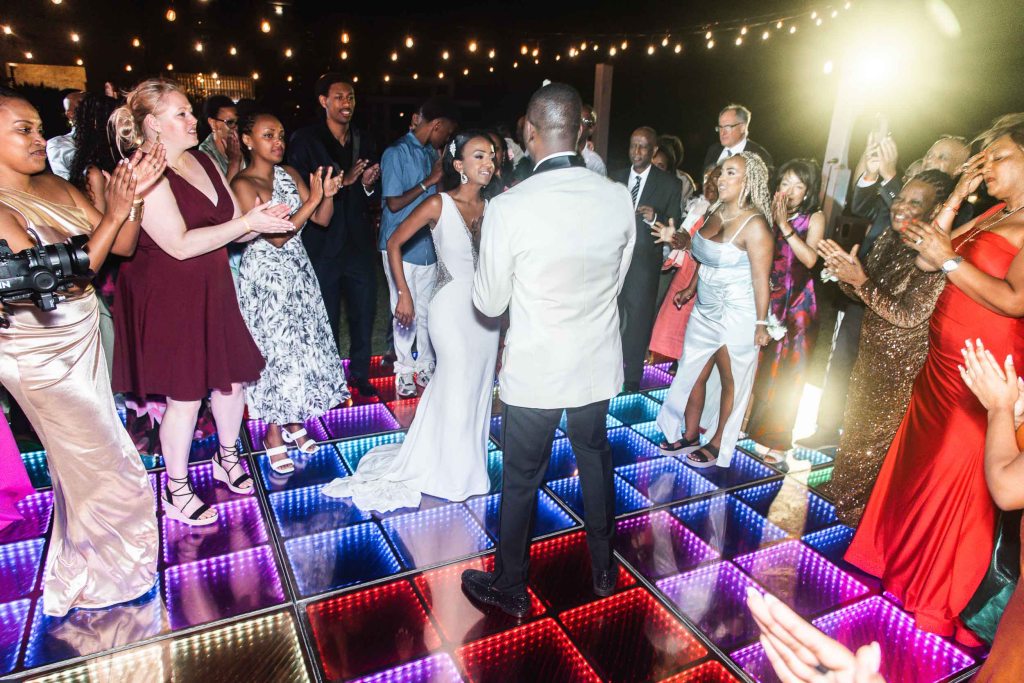 The night started with the entrance of the wedding party, followed by dancing on the dance floor. Then came dinner, heartfelt speeches from family and friends, and finally, a big celebration filled with music and dancing.