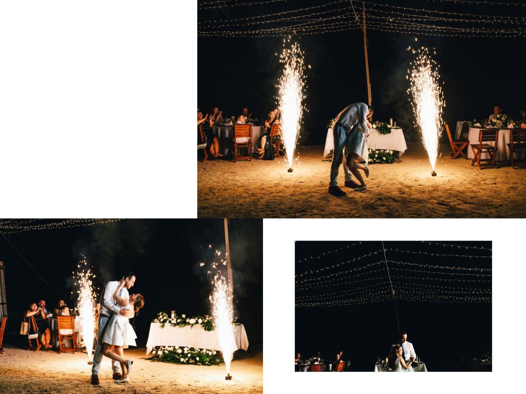 Photographing a sunset wedding reception in the Riviera Maya is about more than documenting details. It’s about feeling the rhythm of the evening — the laughter echoing under palm trees, the way a dress catches the last ray of sunlight, or the reflection of the couple’s first dance mirrored in the sand.
