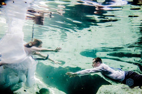Playa del carmen, Quintana Roo, Mexico Trash the dress cenote photo underwater. Photo by Alessandro Banchelli http://www.photostudioab.com Email: ideafotoplaya@gmail.com